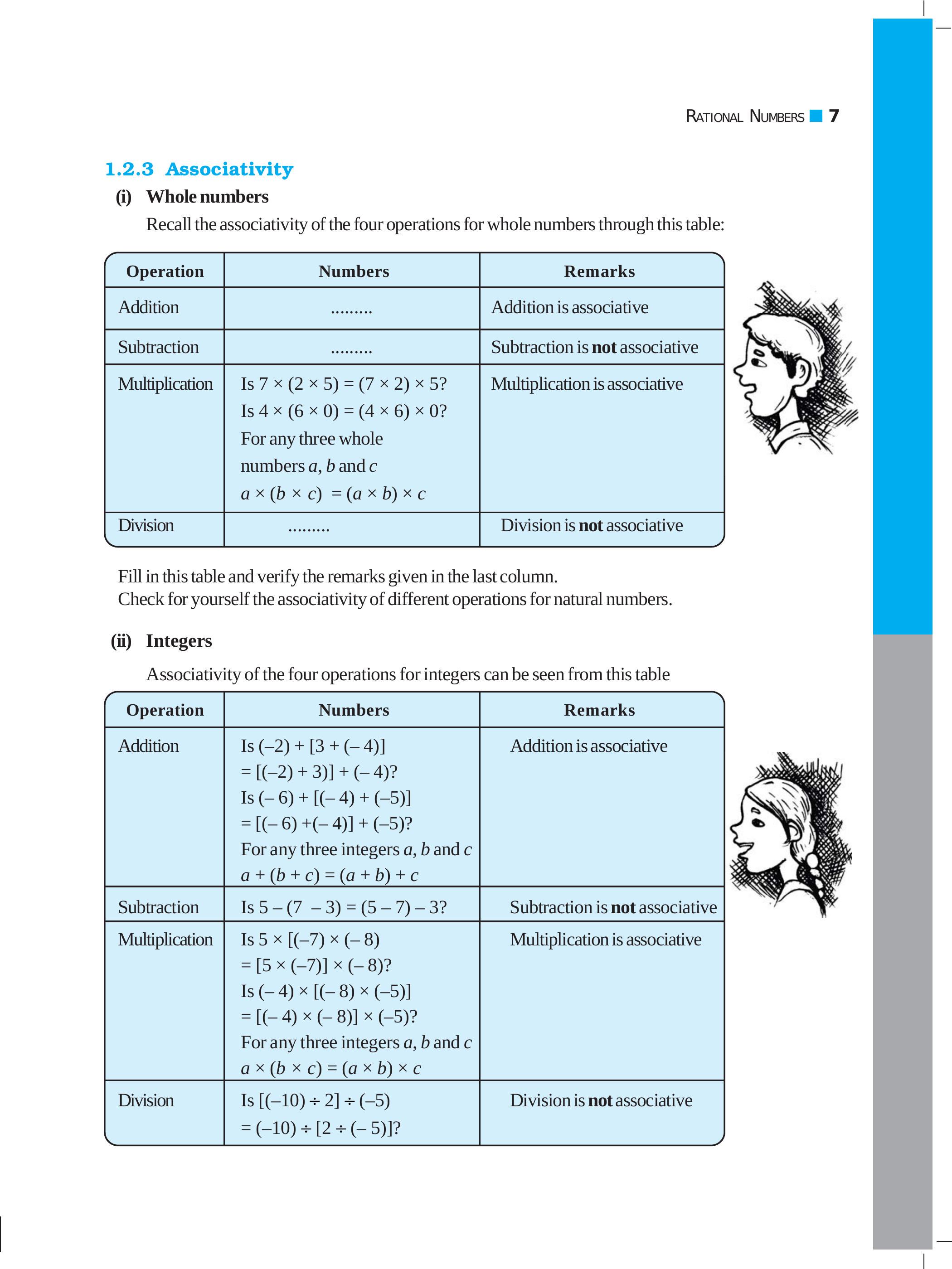Recall the associativity of the four operations for whole numbers through this table: